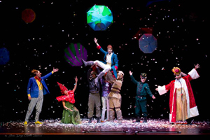 El Principito, es un espectáculo musical lleno de poesía, color y movimiento. La música, el canto, la danza y el teatro se mezclan para llenar de vida el escenario. A ritmo de la música los personajes van cantando sus historias y guiando al Principito por su viaje en el universo de “la vida real”.